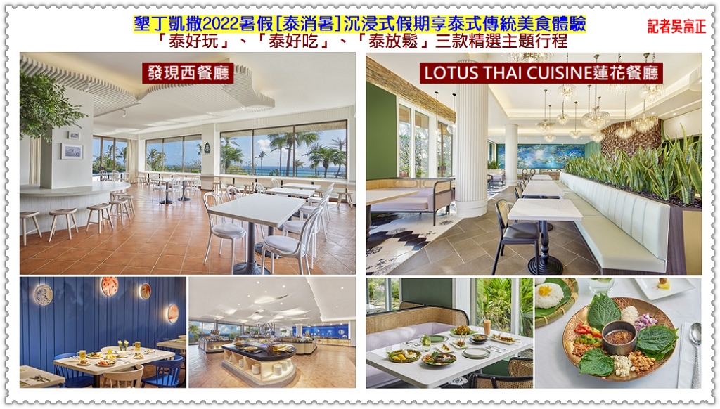 【墾丁凱撒】房客除參加各種精彩活動外,全新改裝的「發現西餐廳」限定泰式戶外BBQ,LOTUS THAI CUISINE(蓮花餐廳)正統泰式料理更是不容錯過。