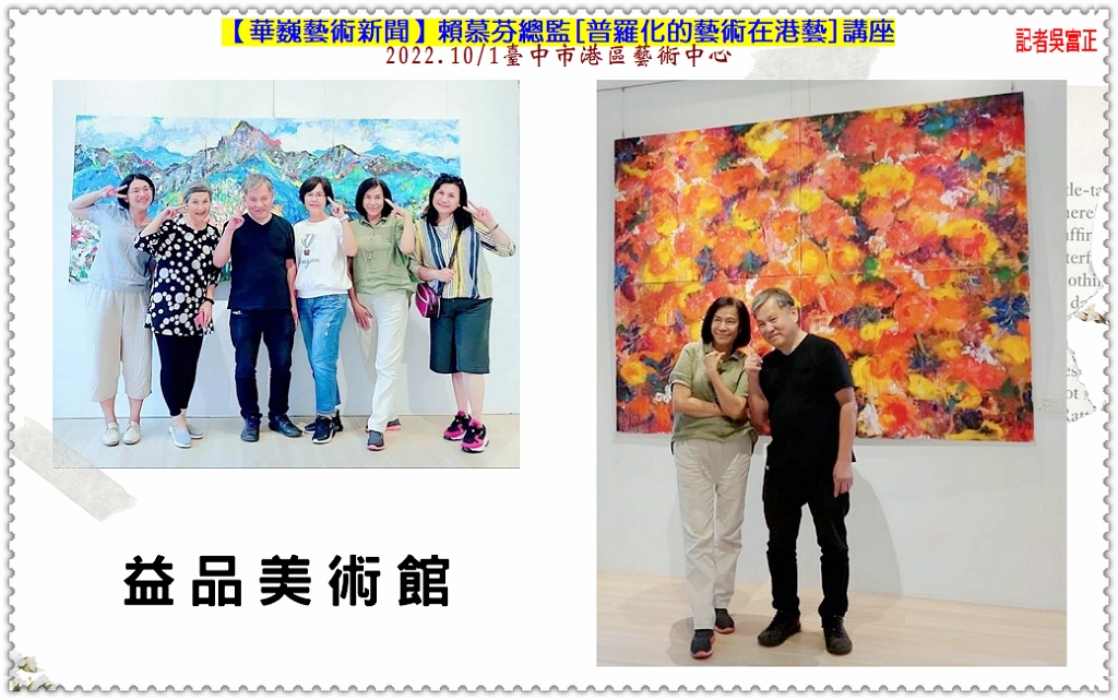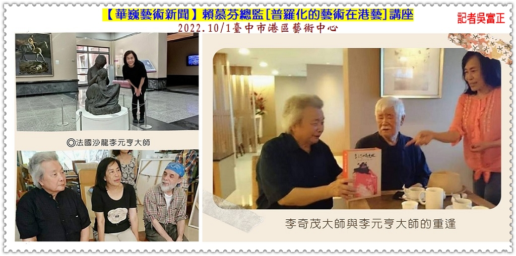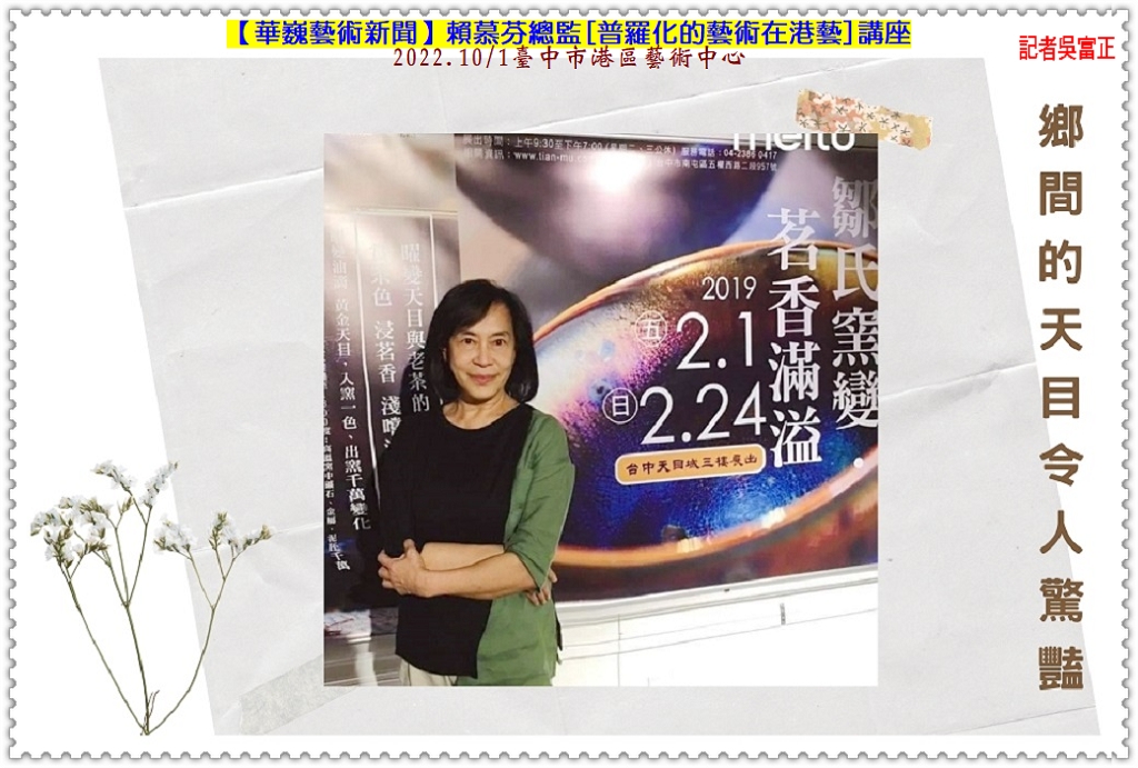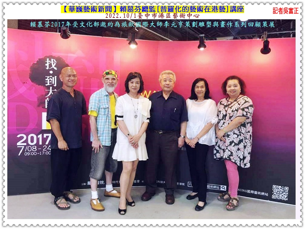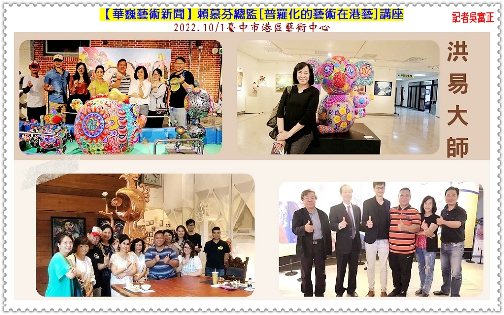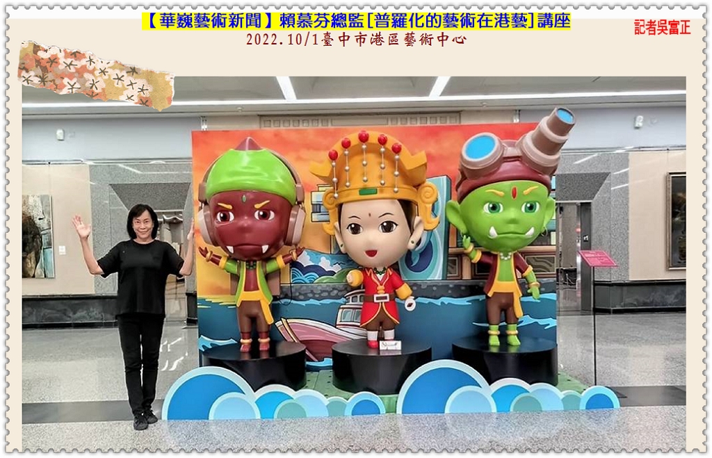 【華巍藝術新聞】賴慕芬總監10/1在台中市港區藝術中心講座《普羅化的藝術在港藝》為来自全國各領域志工就藝術與普羅的融合,進行專業深刻又生動有趣的演繹。賴慕芬表示,這些年戮力推廣藝術深入民間不遺餘力,講座前走進港藝大廳~大甲媽特展~以有趣吸睛的神明造型,這就是成功達到寓教於樂,傳統、宗教與現代化的完美結合。