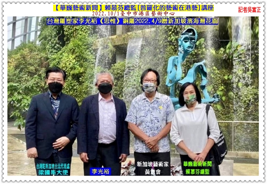 賴慕芬總監將新加坡國寶黃意會推薦與台灣國寶洪易大師交流,締造日後台星跨國聯展,以及采泥藝術在新加坡濱海灣花園李光裕大展時,總理李顯龍特別在臉書寫下《台灣藝術家》李光裕,同時放上他拍下的李光裕作品《思惟》,而黃大師協助星唯一華語電視台無償為~台灣李光裕~專輯,每每令人動容。