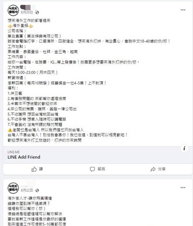 其中難能可貴的是本局刑警大隊與第三分局,共同查獲蔡OO、詹OO人口販運案,詐騙集團以網路刊登招募境外工作為幌子,詐騙國人出境後以沒收護照及暴力脅迫方式,逼迫被害人從事詐騙工作,經本局連繫駐外代表處救回遭詐騙去寮國金山角特區徐姓被害人,犯嫌蔡OO、詹OO經拘捕後檢察官聲請羈押獲准,有效打擊詐欺集團氣焰維護社會治安。