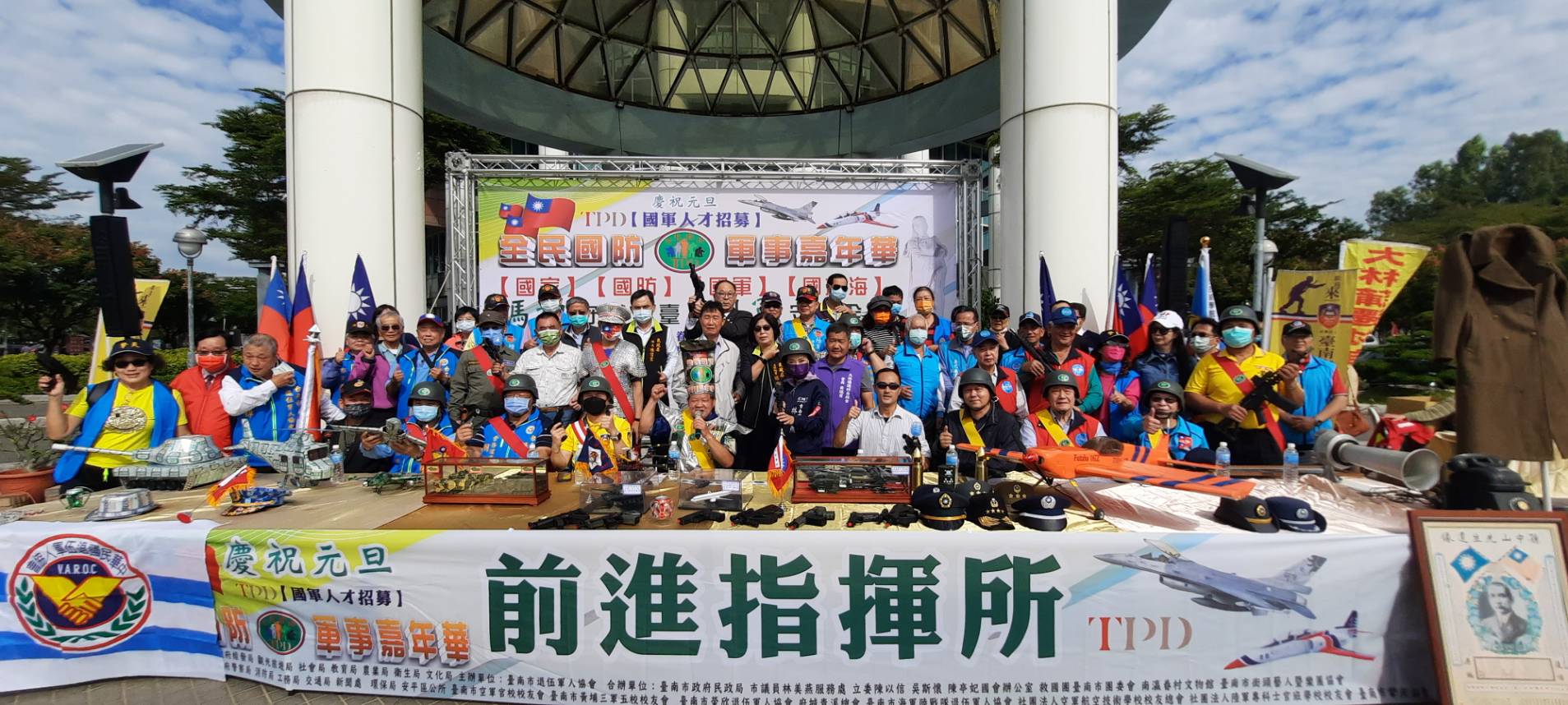 孫子兵法云:「兵者,國之大事」國家國防國軍國旗海,以國為本,滿場旗海飄揚,慶祝國家元旦快樂。媽祖守護全臺,國軍守護,全民為主軸,協助國軍人才招募,因共軍擾臺兩百餘次,烏俄戰爭成人禍,憂心國防兵源不足,ㄧ群退伍軍人和榮民,結合臺南市退伍軍人協會、榮欣退伍軍人協會、三軍五校校友會、空軍官校校友會、海軍陸戰隊退伍軍人協會、空軍航技學校校友總會、陸軍專科士官班校友會、府城清溪總會、擎天協會,發起全民國防教育軍事嘉年華,並由臺南市退伍軍人協會主辦,訂於111年12月31日至112年元月2日,時值元旦三天連假,假臺南市安平區「林默娘公園」,盛大舉行。