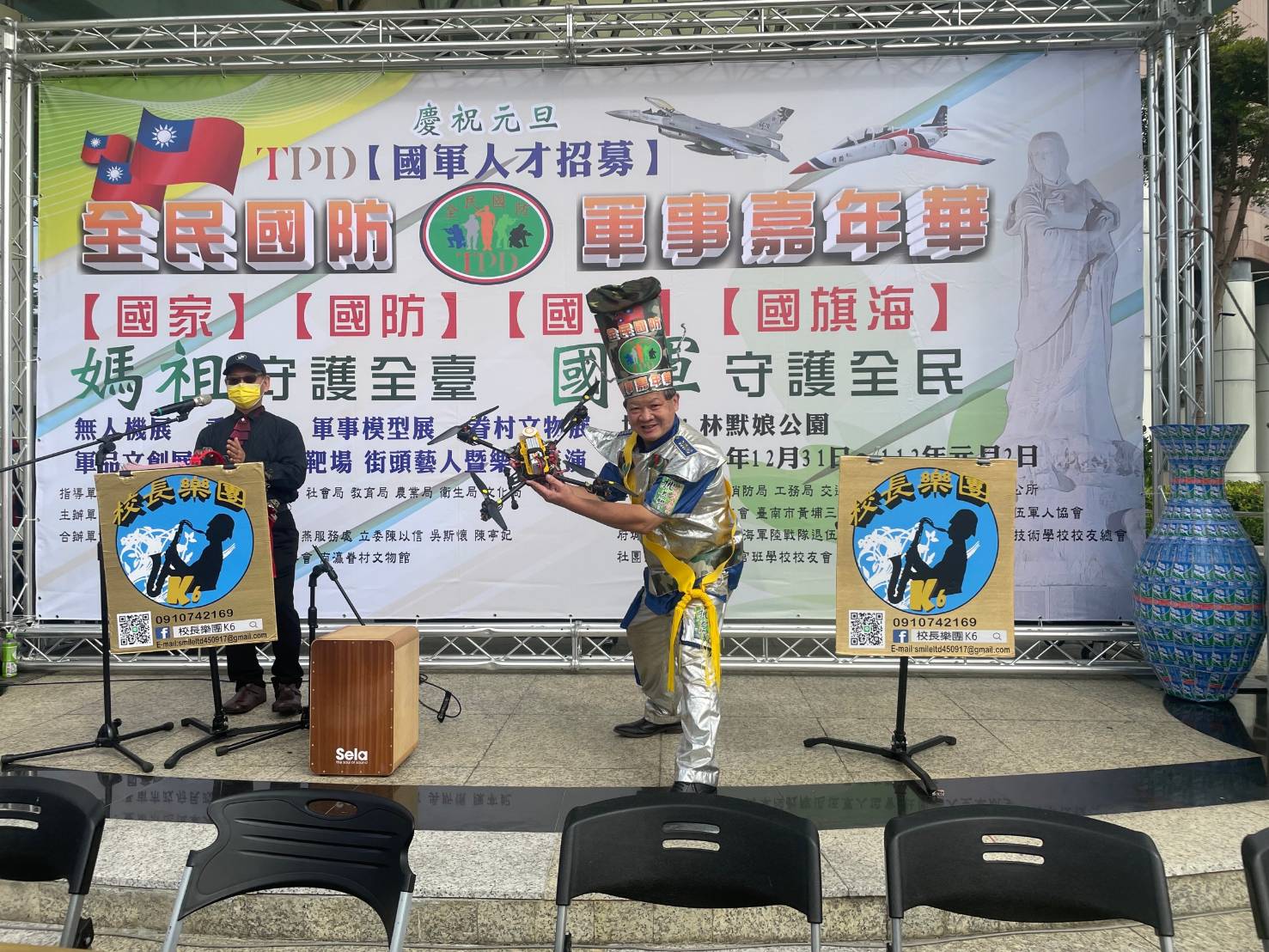 三天街頭藝人暨樂團,不間斷表演,元旦野臺升旗典禮,薄海歡騰,來臺南旅遊的觀光客,可別錯過了,這趟林默娘公園軍事嘉年華,否則到臺南,等於白來了。