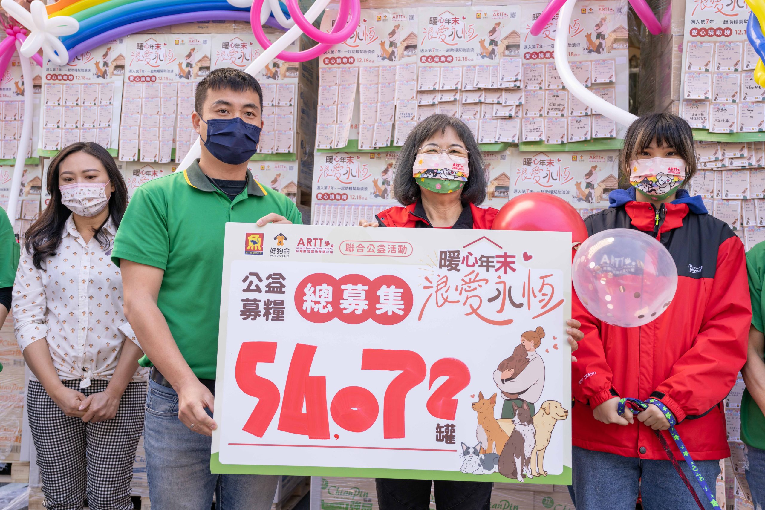 2022年進入尾聲,緊接迎接農曆新年,人們可以享受回家圍爐的溫馨年假,但街上還有許多無家可歸的「浪浪們」該何去何從呢?近年來,社會大眾相當關注流浪動物議題,尤其近期寒流來襲,牠們必須耐著低溫,還面臨著飢餓的窘境。有鑑於此,知名寵物水族店魚中魚在今(2022)年11月18日至12月18日舉行第7屆「暖心年末 浪愛永恆」愛心募糧活動,並由台灣動物緊急救援推廣協會(ARTT)將罐頭、飼料捐贈給收養流浪動物的愛心單位。並於12月22日舉辦「捐罐儀式」,截至目前為止,短短一個月已募集全台6,048位愛心民眾參與,共捐贈54,432罐貓狗罐頭!
