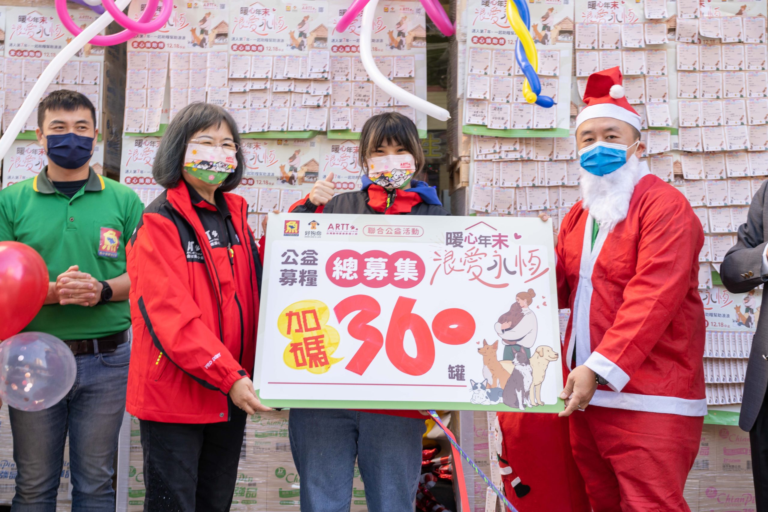 12月22日捐罐儀式盛大召開,吸引許多人熱情參與,現場還出現了「聖誕老公公」,更溫馨加碼捐贈40組的貓狗罐頭!為浪浪增添更多的糧食,暖心暖胃吃得營養又健康,同時也希望藉此拋磚引玉,邀請更多民眾未來一起響應,並透過自身的小小力量,幫助更多流浪動物能夠溫飽,大大延續對動物更多的愛。