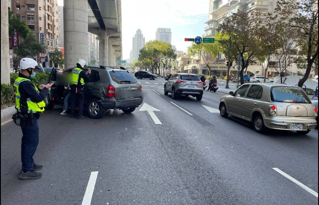 警方於112年2月2日9時許執行巡邏勤務時,發現1輛黑色自小客車懸掛假車牌,於該車在文心路、臺灣大道路口停等紅燈時進行盤查,惟該車駕駛拒檢企圖衝撞逃逸,遭警方朝左後輪射擊4槍,車輪爆胎後仍行駛逃離現場,逃離過程在文心路、市政北一路口撞擊1輛休旅車,肇事後又逃逸,警方循線追緝該車,在惠文路、文心一路口找到該車自撞路燈桿,駕駛已棄車逃逸,現場帶回1名女乘客釐清案情,並已鎖定嫌犯身份,查緝到案中。