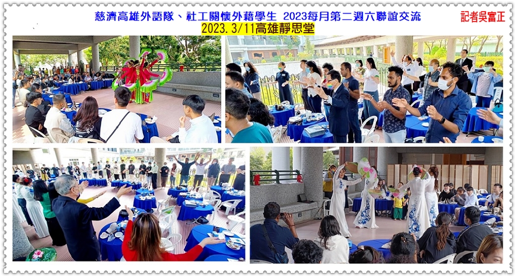 【慈濟】以人本為核心、以關懷傳大愛,高雄外語隊、社工團隊2023年起推動關懷在台就學外藉學生及就業的外藉人士,每月第二週六在高雄靜思堂舉辦聯誼交流。台灣大學學風的自由及專業受到亞洲各學子們的關注,據國家發展委員會統計,台灣大專院校境外學生人數快速成長,境外生主要來自越南、印尼、馬來西亞等國家,由102學年度9.7萬人,成長至108學年度12.8萬人,109及110學年度因COVID-19邊境管制下降,111學年度逐步解封後回升至10.3萬人。