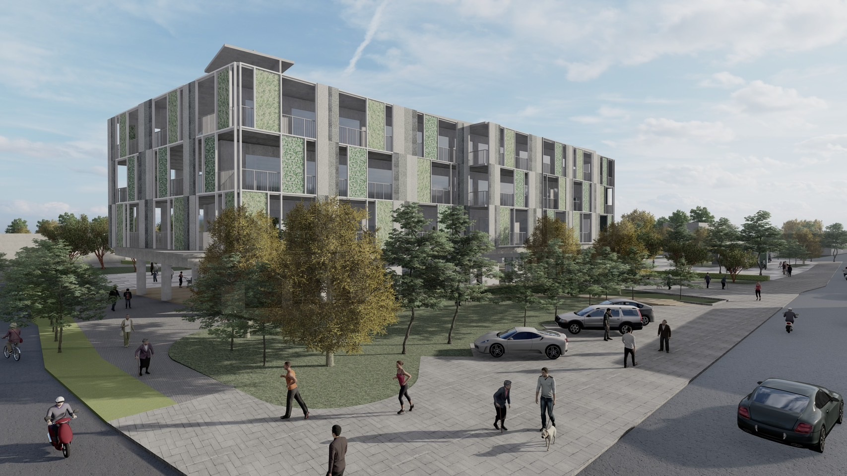 本案基地位於屏東縣車城鄉保力社區中心位置,預計於114年5月完工,基地面積約為12161平方公尺,總樓地板面積約9714平方公尺。園區的空間配置,以住民生活、活動及社區參與融合為目標,期望成為社區的一份子,方便居民在休閒、健康復能、服務諮詢、互助交流等都能使用的共享資源。
