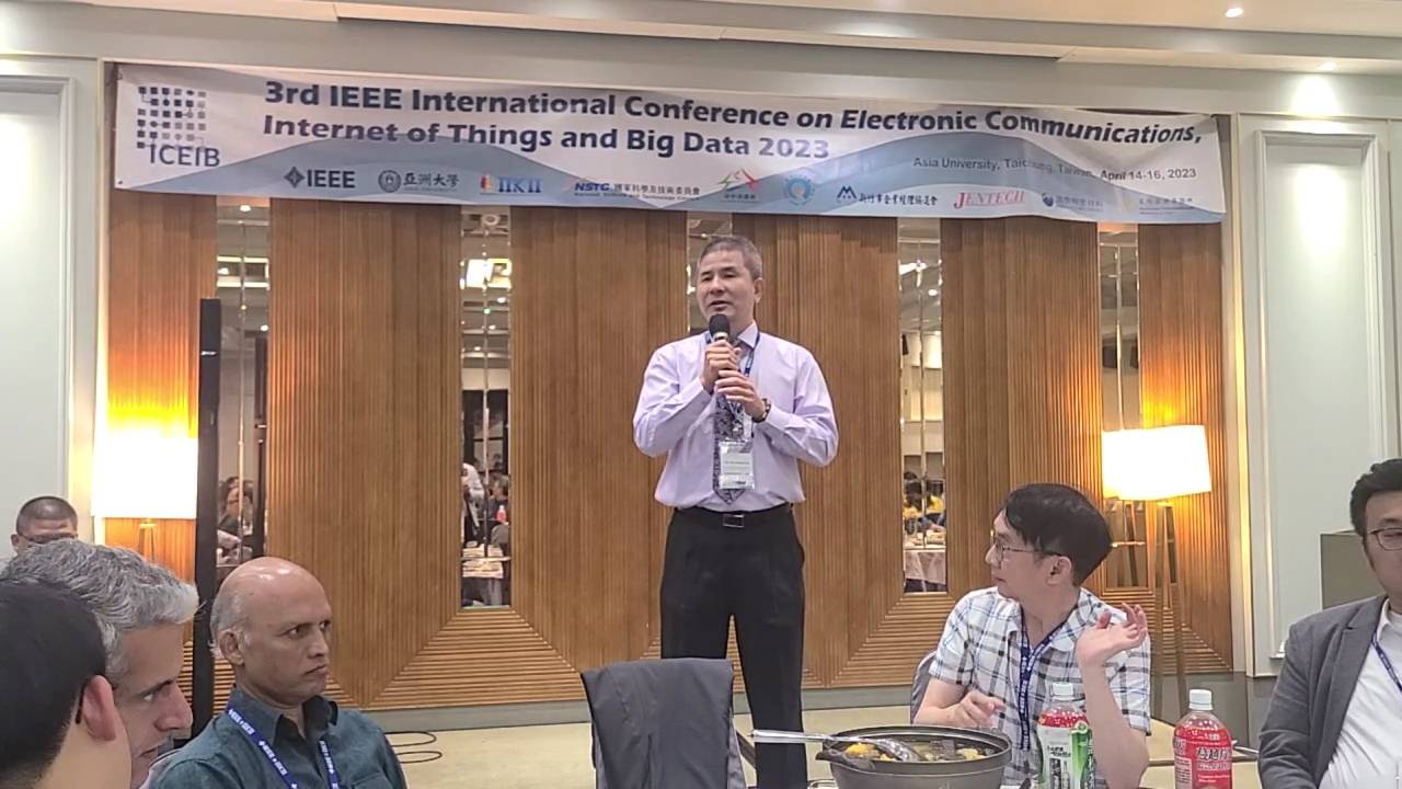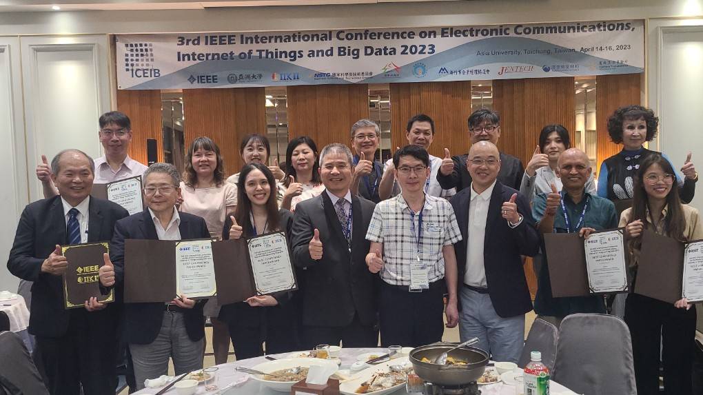 亞洲大學與國科會、國際發明學會、國際電機電子工程師學會,於4月14日在台中市霧峰區亞洲大學校區,舉行聯合舉辦2023第三屆 IEEE ICEIB電子通信、物聯網和大數據國際研討會,晚上在台中議蘆會館舉行晚宴頒獎典禮,頒發最佳論文獎,晚宴活動節目豐富精彩無比。