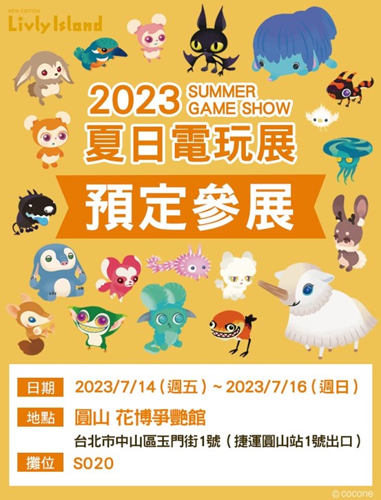 《寵物島 Livly Island》首次參加台北夏日電玩展,將為玩家帶來一場可愛寵物體驗的特色之旅。這是一款培育寵物的遊戲,不可思議的「Livly」是透過鍊金術所打造,遊戲在2003年推出。除了可愛療癒外,有些脫離常軌的角色和道具設計也很受歡迎,於2009年,登錄人數突破100萬人!得到以女性為中心的廣大支持。