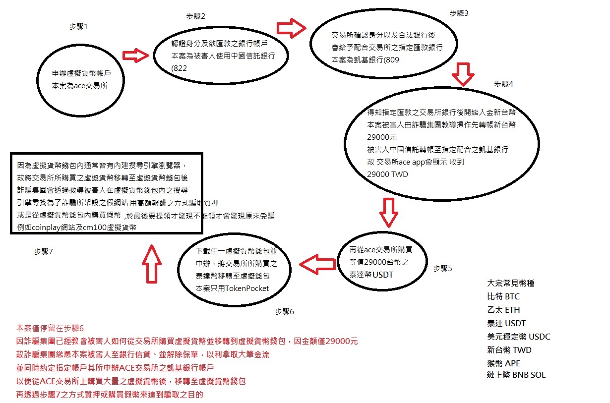 中市六分局協和派出所警員陳晉銘平時對虛擬貨幣小有研究及了解,每當派出所同仁受理虛擬貨幣詐騙時,都會主動跳出來幫忙並了解最新詐騙資訊,所以當接獲銀行通報時,陳員就敏銳地察覺可能遭受投資詐騙,經與被害人黃女(70年次)了解後得知,其在通訊軟體「LINE」結識1名男子,雙方相談甚歡後便邀約投資虛擬貨幣,黃女因兩人聊的投緣,便毫不懷疑地將新臺幣2萬9000元匯入指定幣商,並加碼要求至銀行信貸,加大獲利空間,行員在得知黃女來意後,便立刻通報警方協助,陳員到場後即利用平時對虛擬貨幣的了解,向黃女說明其中的「眉角」,並指出這為詐騙慣用手法,黃女經由員警詳細的說明後才恍然大悟,察覺自己差點落入詐騙陷阱,所幸最後陳員也發現黃女還沒有將錢匯入宛如「鬼門關」的人頭帳戶裡,才能成功追回金錢。
