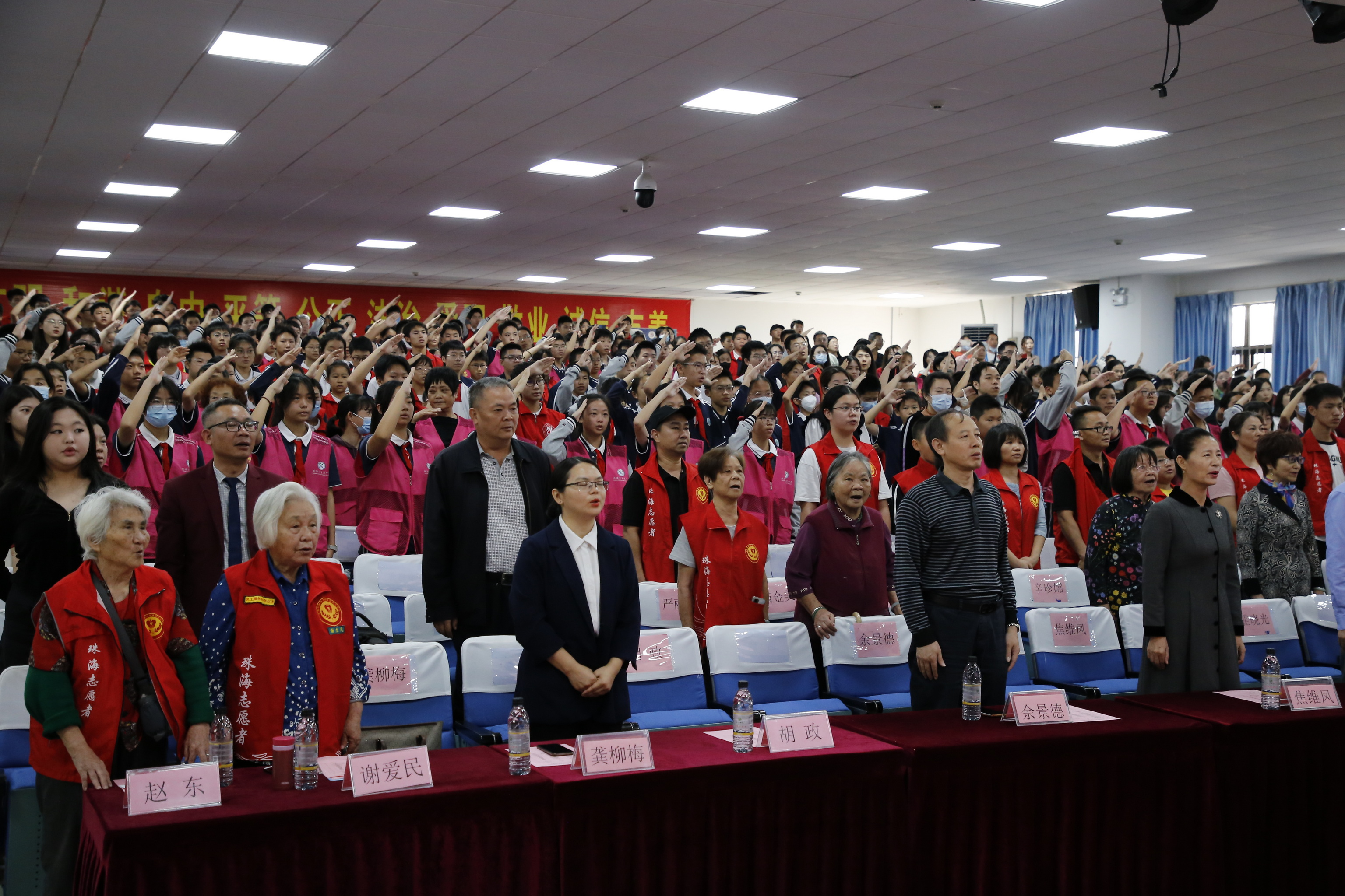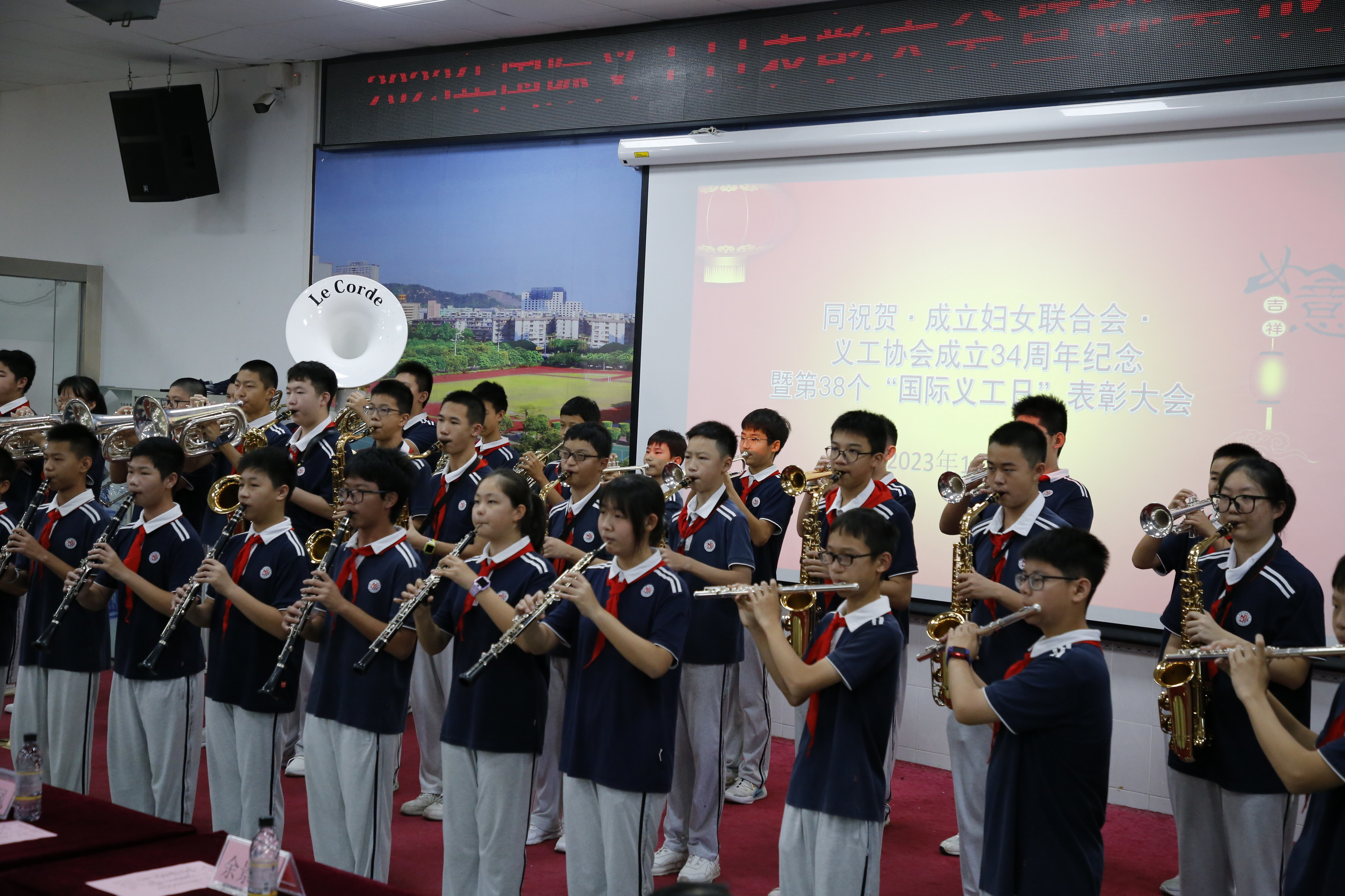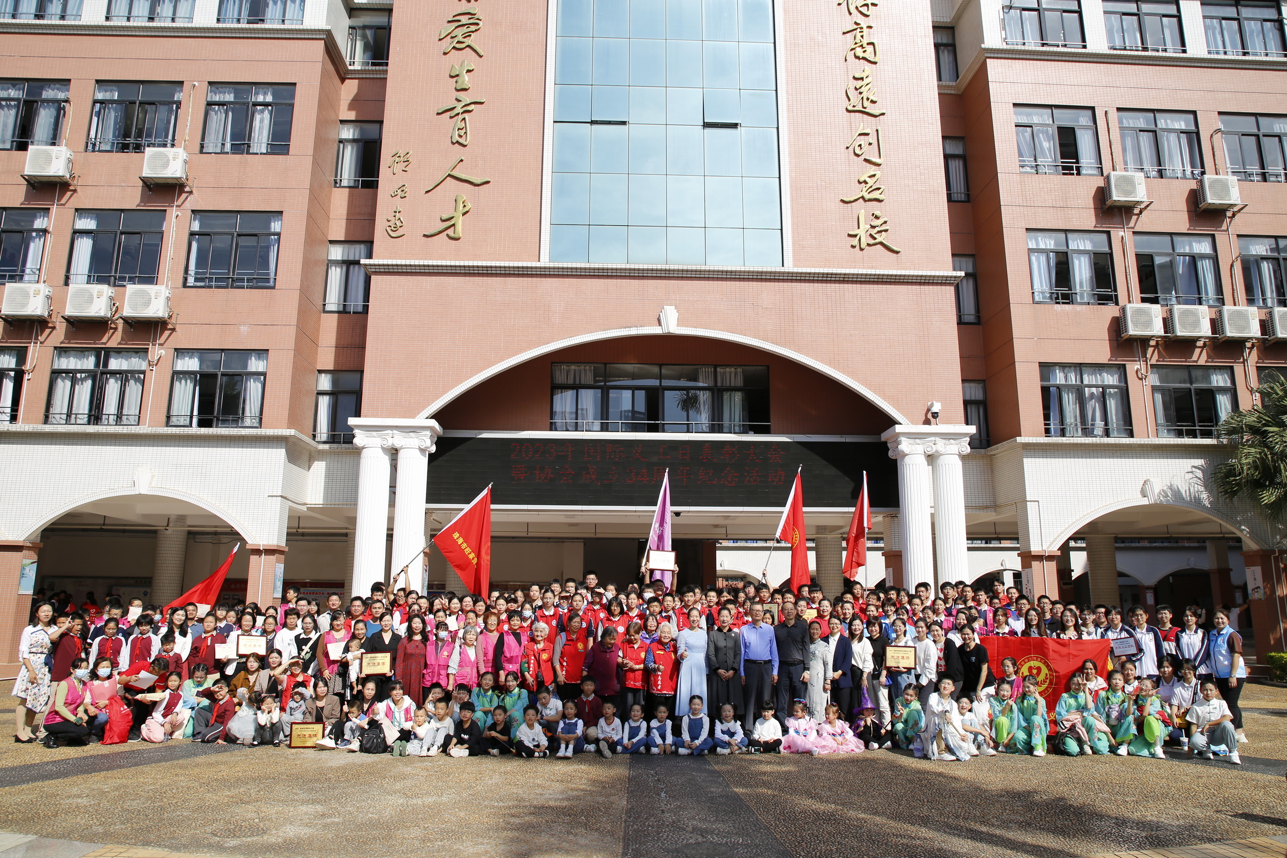 為進一步弘揚“奉獻、友愛、互助、進步”的志願精神,宣導社會文明風尚,普及“奉獻他人、提升自己”的志願服務理念, 2023年12月10日上午,珠海市精神文明建設義工協會組織開展第38個“國際義工日”表彰大會暨協會成立34周年紀念文藝演出活動。於上午9時左右,來自九洲中學、文園中學、紫荊中學、翠微小學、博愛幼稚園以及旺家公司等協會30餘個分會成員在九洲中學歡聚一堂,能容納600餘人的西報告廳座無虛席。
