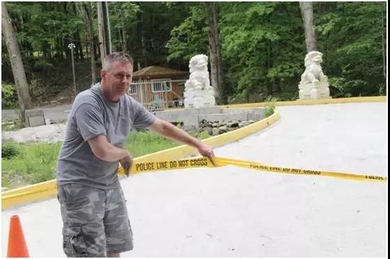 ▲「龍泉寺佛學公司」周圍被拉起警戒線。圖源:recordonline