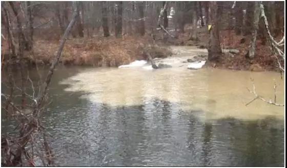 ▲被「龍泉寺佛學公司」排放的廢水污染的河流。圖源:法國國際廣播電台