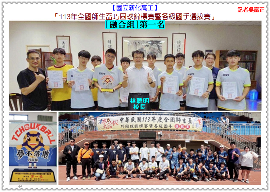 【新化高工】林聰明校長分享,5/10於彰化鹿港舉辦「113年全國師生盃巧固球錦標賽暨各級國手選拔賽」,【新工】學子一路過關斬將,獲得[融合組]第一名佳績,特別感謝教師團隊、教練及家長會。即將在7月中旬韓國江原道舉行的2024年東亞區融合曲棍球賽,新工學子也有一人入選代表中華台北參賽。