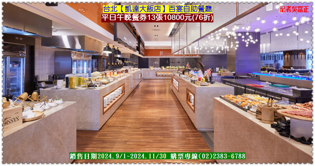 ■台北【凱達大飯店】百宴自助餐廳-平日午晚餐券13張10800元(76折)