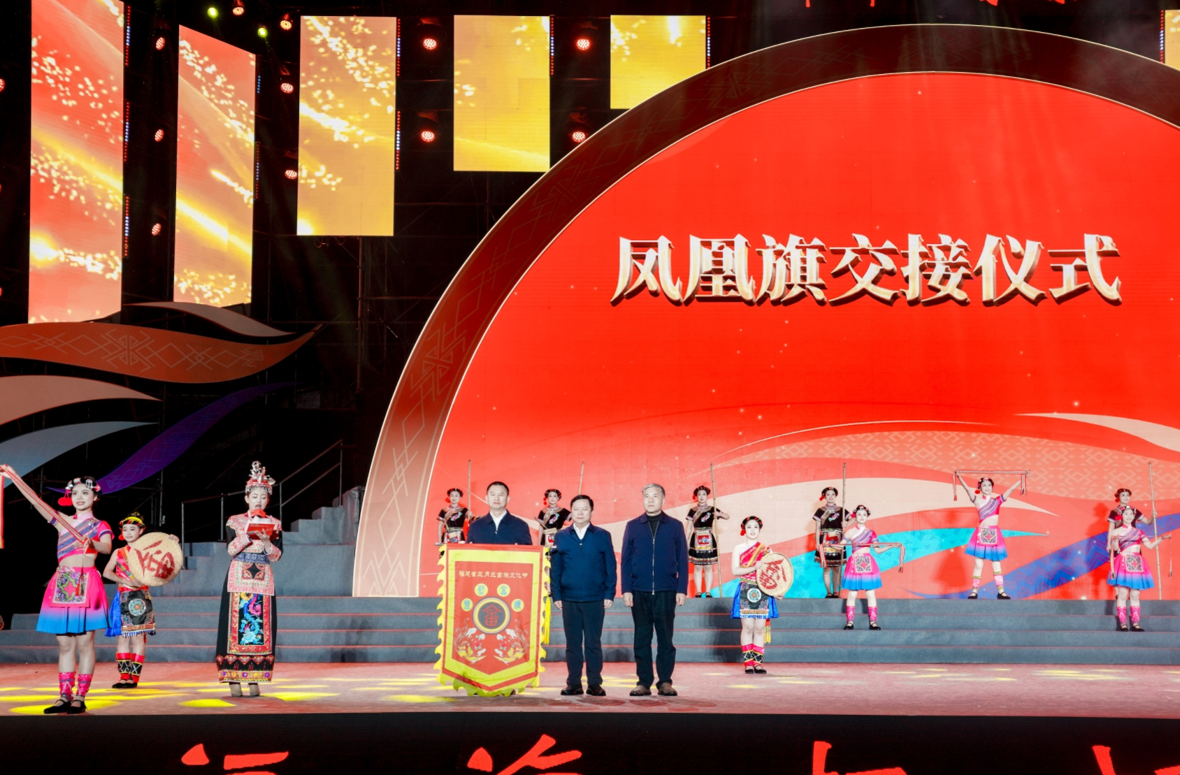 晚會尾聲,現場還舉行了舉主辦地鳳凰旗交接儀式,下一屆“三月三”文化周活動將在福建龍岩舉辦。