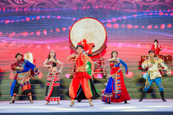 晚會以大型歌舞《鼓舞中華》震撼開場,中央民族歌舞團的舞蹈演員身著各民族盛裝載歌載舞,用象徵團結的彩帶,傳遞展現著了中華大地上各民族交融彙聚、攜手發展的生動畫卷。
