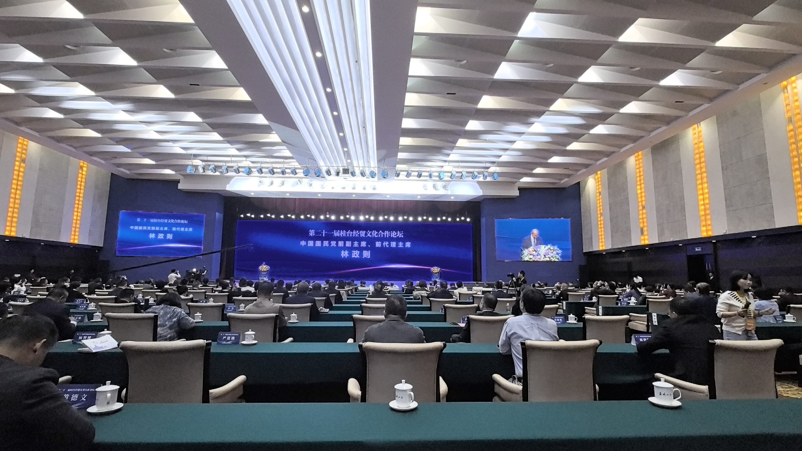 11月11日,以「共享AI時代新機遇 推進桂台合作新發展」為主題的第二十一屆桂台經貿文化合作論壇在廣西南寧開幕。兩岸企業家峰會大陸方面理事長郭金龍,自治區主席韋韜,中共中央台辦、國務院台辦副主任潘賢掌,中國國民黨前副主席、前代理主席林政則,全國台灣同胞投資企業聯誼會會長李政宏出席開幕大會並致辭。自治區黨委副書記王維平主持開幕大會。
