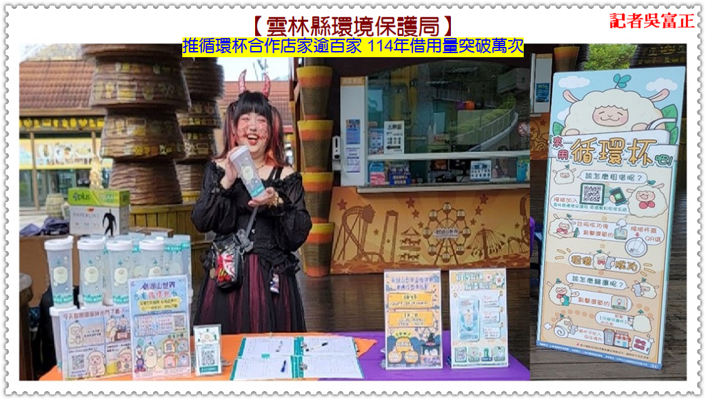 【雲林縣環境保護局】推循環杯借用服務再創佳績,截至11/20止,雲林縣114年度借用量正式突破一萬次;雲林縣循環杯為全國首創由公部門提供租借服務,自109年初步試辦以來不斷精進,具備「甲借乙還」的高度便利性,113年更因應民眾使用回饋,將杯款升級至第三代新杯,耐用度與使用體驗皆大幅提升,使114年租借量較去年增長1倍,顯示雲林縣民支持度持續提升。