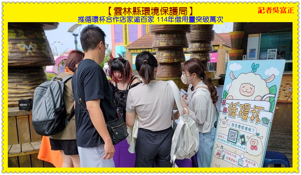 【雲林縣環保局】表示,目前雲林縣已有超過百家飲料業者加入循環杯服務,據點涵蓋斗六市、古坑鄉、西螺鎮、林內鄉、土庫鎮、虎尾鎮、北港鎮、斗南鎮、褒忠鄉及元長鄉等10個鄉鎮市。114年更配合大甲媽祖與白沙屯媽祖二大進香繞境活動推出循環杯使用優惠,成功吸引大量外地信眾體驗循環使用,另外也攜手縣內劍湖山世界主題樂園推動園區飲料外帶改用循環杯,積極將外地遊客納入減量範圍,讓環保行動從日常延伸至宗教、旅遊場域。