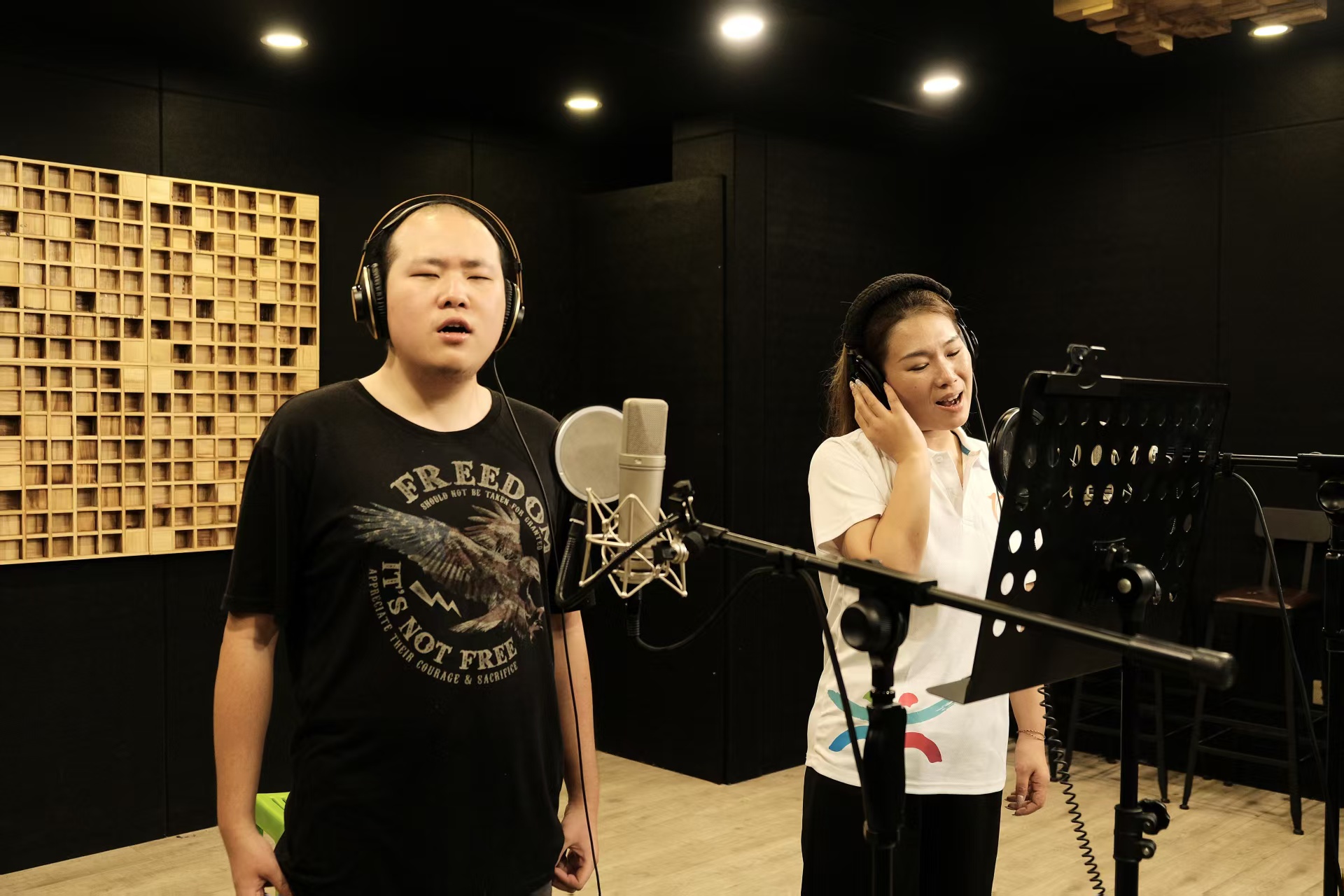 演出結束後,歌曲進入專業錄音階段。錄音棚內,鄭達鴻通過耳機接收指導,沈怡君主動調整演唱方式配合。「我們像是在用聲音握手,」她分享,「每錄完一段,我都要仔細聽回放,感受他的演奏節奏,再微調自己的表達。」MV拍攝階段,兩岸志願者持續攜手,福州團隊陪同鄭達鴻在煙台山、江心公園等地取景,沈怡君則在台北淡水河畔完成對應場景拍攝。「儘管分處兩岸,但通過線上頻繁溝通,我們確保了畫面風格統一。」沈怡君說。經過三個月後期製作,這部承載兩岸青年愛心的MV順利完成。