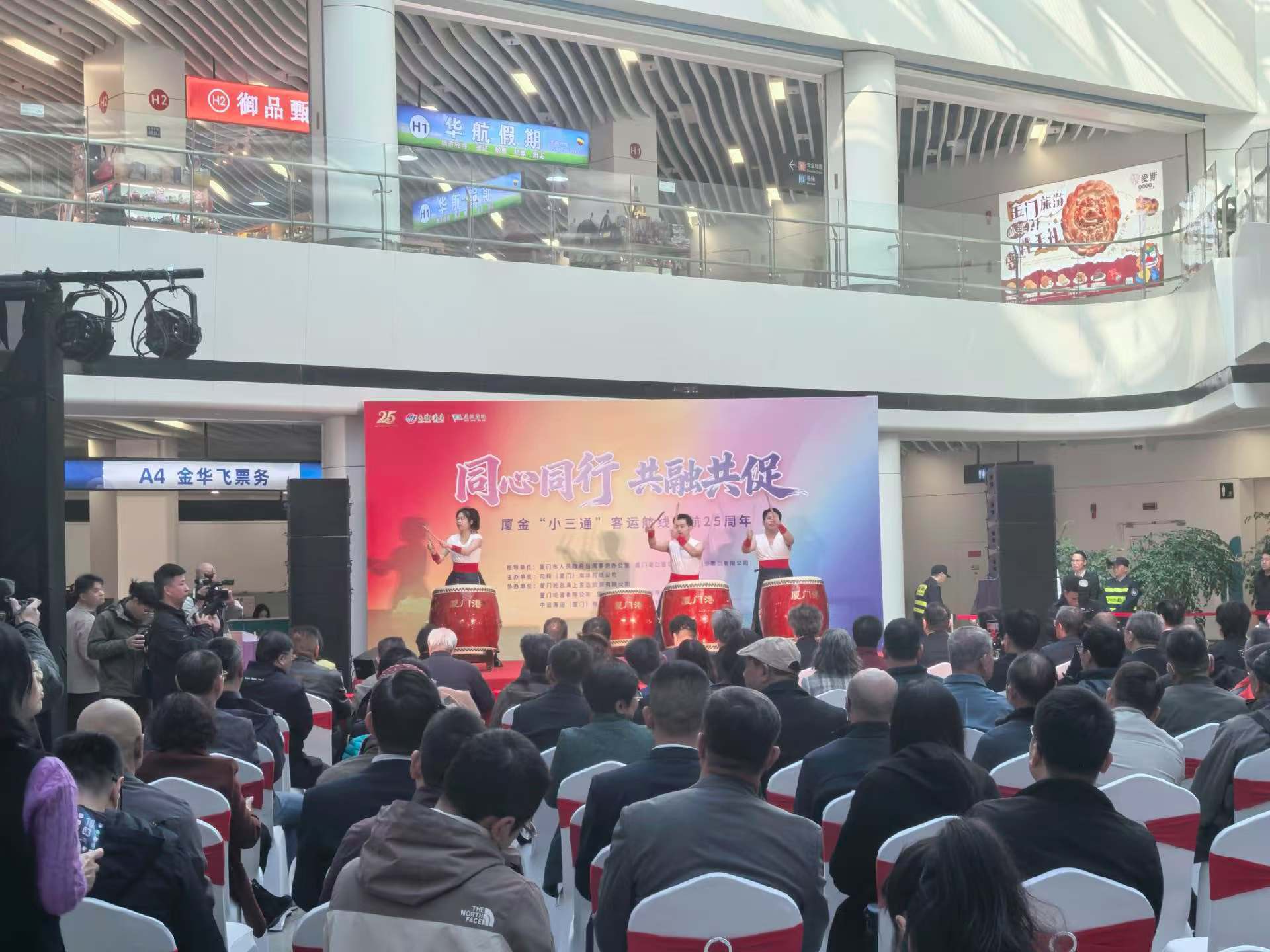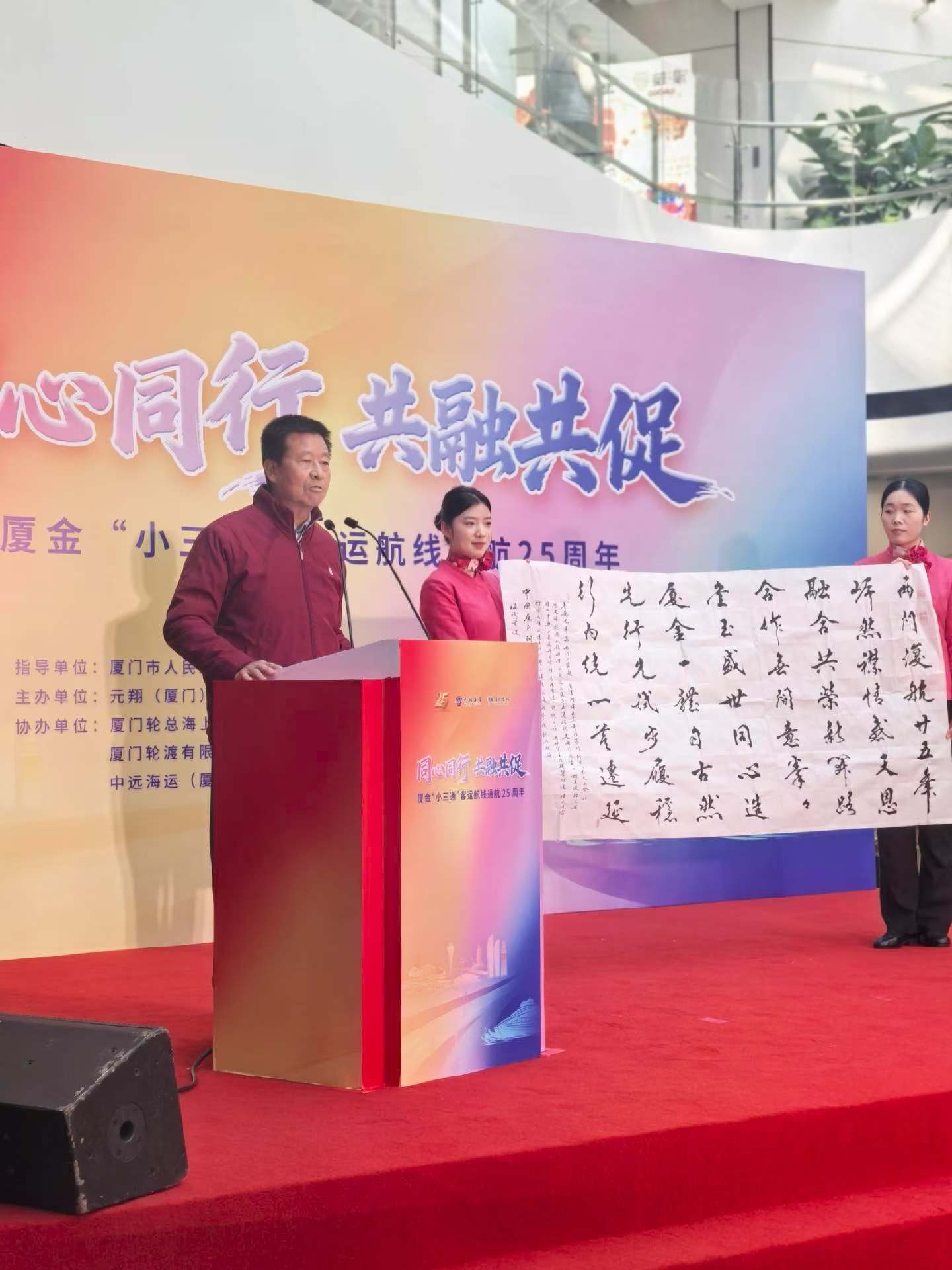 2026年1月2日,廈金「小三通」客運航線歡慶通航25週年,紀念活動於廈門盛大舉行。廈門港口管理局局長任國岩、金門縣議會議長洪允典、廈門翔業集團總經理周小剛、廈門市人民政府台灣事務辦公室副主任虞聖堅、金門縣觀光處處長許績鑫,偕同廈金航線相關從業單位代表齊聚現場,共慶此一兩岸融合發展的重要里程碑。