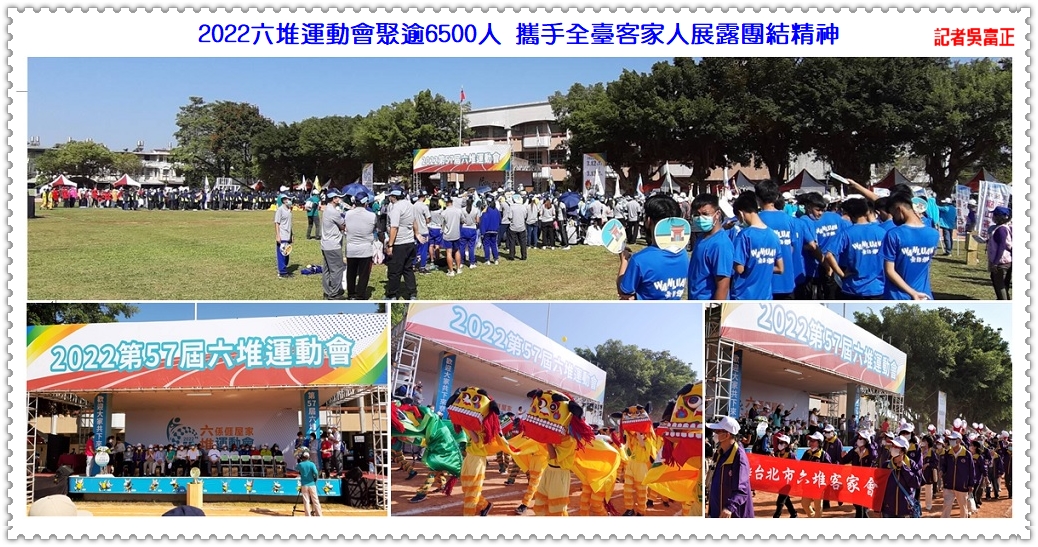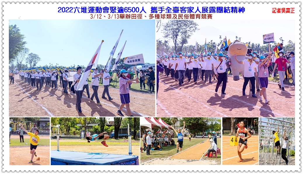 2022第57屆[六堆運動會]由屏東縣竹田鄉承辦,3/12在竹田國中盛大開幕,聚集超過6500名選手、民眾參與這場六堆客庄的重大文化盛事,開幕式由客家獅隊引領大會籌備委員、裁判團進場,六堆各鄉區選手進場時將六堆客庄文化、在地特色和團隊精神展露無遺;【客委會】透過六堆運動會的舉辦凝聚與團結六堆客家鄉親,也透過各項運動賽事發掘客籍的運動人才,培育出新一代的奧運選手,並且將客庄的共同集體記憶一代一代的傳承下去,讓六堆運動會成為全國民眾每年必定共下參與的文化盛會。