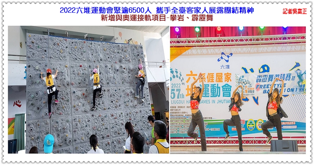 【客發中心】說明,主賽事在3/12、3/13舉辦田徑、多種球類及民俗體育競賽等項目,更首次新增與奧運接軌項目-攀岩、霹靂舞,霹靂舞參賽選手年紀最小的只有6歲,上場後毫不怯場,贏得眾人歡呼,也為六堆運動會添加新的生力軍,更期望六堆運動會能夠與國際奧運接軌,讓更多客庄子弟被世界看見。六堆運動會以相互理解、友誼、團結和公平競爭精神的體育活動來凝聚六堆人,期將六堆客家文化與精神做傳承,持續開創客家風華。