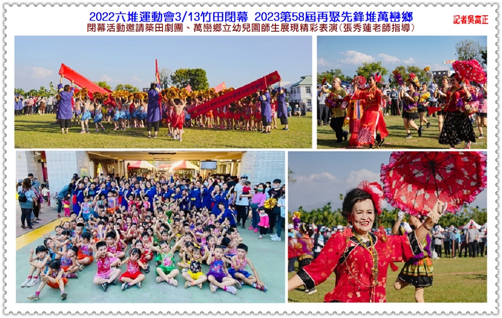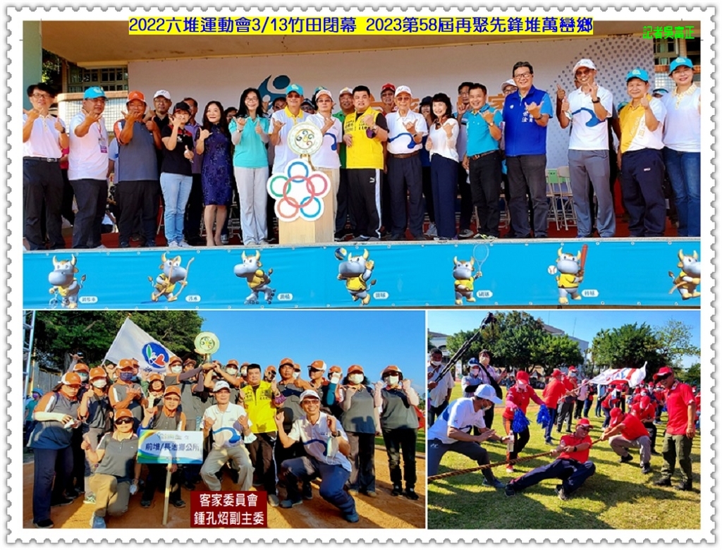 2022【第57屆六堆運動會】3/13舉行閉幕,六堆各鄉區的鄉民及雙北、苗栗、台東、花蓮客家社團聚集竹田鄉參與這場六堆客庄的重大文化盛事;競賽總錦標[第一名]長治鄉、[第二名]內埔鄉、[第三名]竹田鄉,精神總錦標[第一名]竹田鄉、[第二名]甲仙區、[第三名]萬巒鄉。