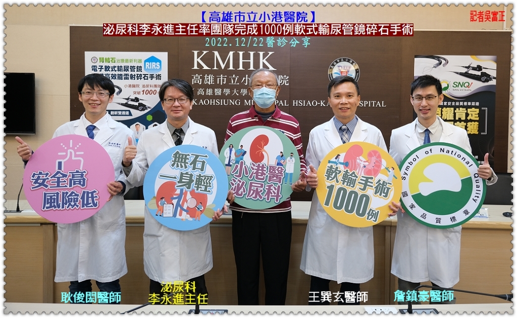 【小港醫院】泌尿科李永進主任帶領泌尿團隊,2020年以軟輸尿管鏡榮獲SNQ國家安全品質標章認證獲得專家高度肯定,在研究上,建立泌尿結石本土資料庫尋找結石重要因子,在臨床治療結合多專科進行結石病人之診斷、治療及預防追蹤,提供個人化精準治療。民眾如有相關需求,可至泌尿科門診就診,由醫師進一步詳細評估與解說。