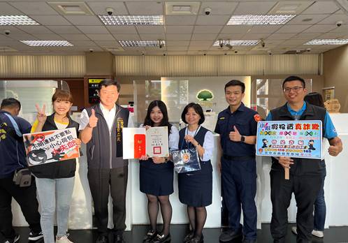 該銀行頒發「市民之光」感謝狀,感謝銀行機警即時通報