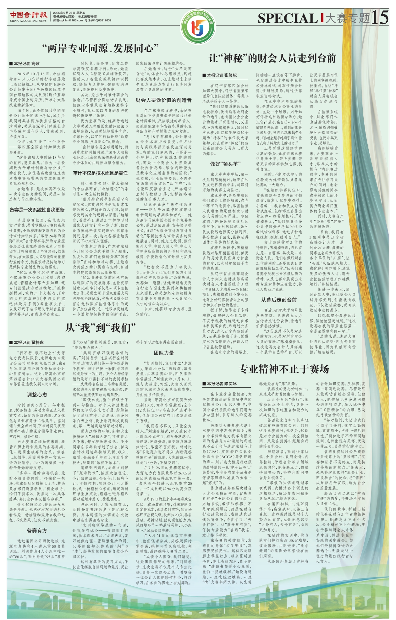 更為重要的是,她期待通過大賽更深入理解國家財經政策與法規脈絡,從而更好地服務客戶、貢獻社會,以實際行動詮釋「兩岸專業同源、發展同心」的理念。