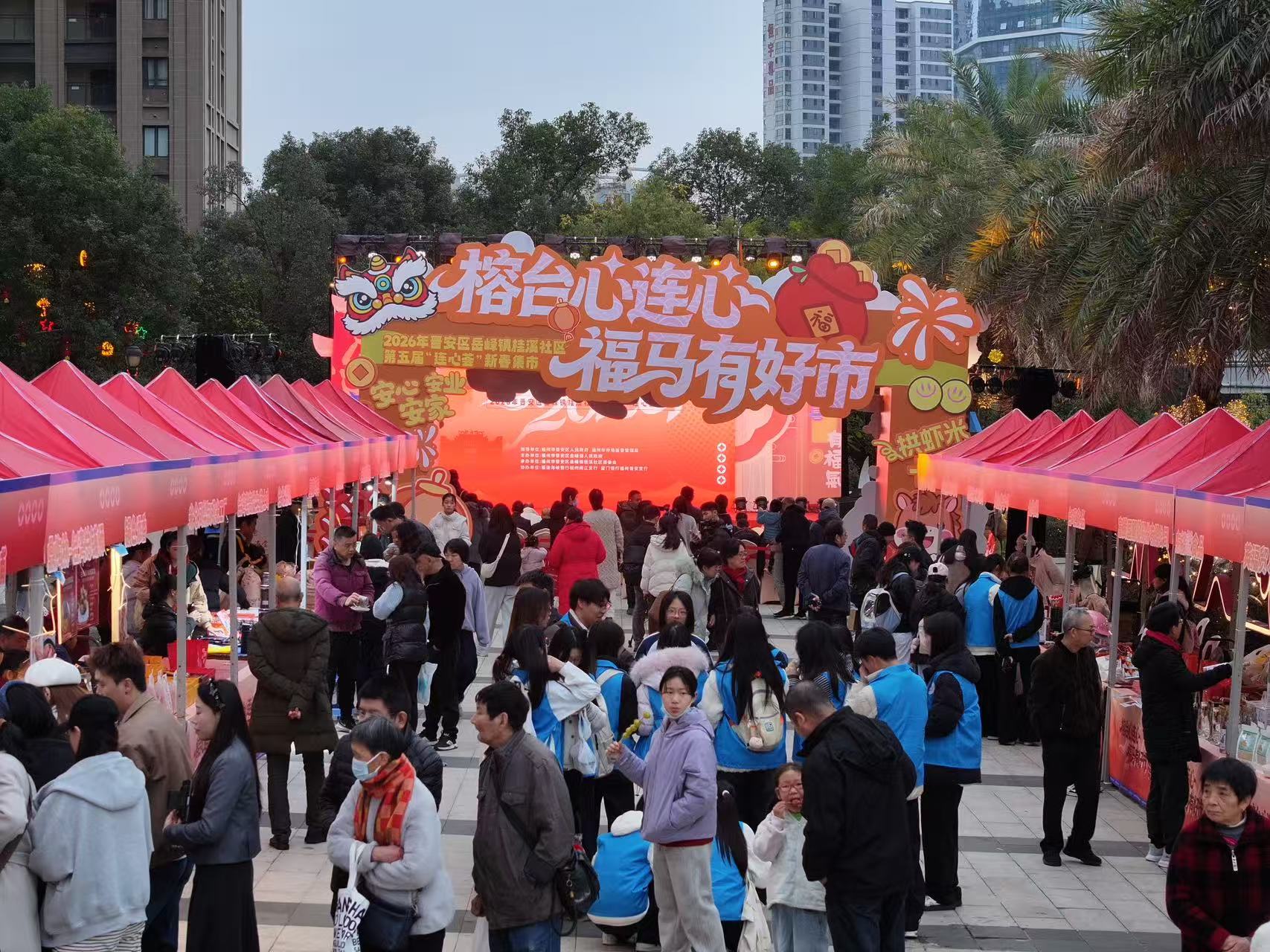 與主會場同步開市的,還有「榕臺心連心·福馬有好市」新春集市。集市匯集50餘家攤位,設士林夜市区、台灣年貨區、福建年貨區、非遺體驗區四大板塊,台灣高山茶、鳳梨酥、大腸包小腸與福州佛跳牆、魚丸、青紅酒、建甌板鴨等兩岸特色美食琳琅滿目,盡顯福馬「同城生活圈」的烟火氣息。其中,馬祖酒廠的高粱酒、林義和工坊的老酒與紅糟美食,憑藉兩岸共通的味覺記憶人氣爆棚。非遺體驗區內,手打糍粑、糖畫製作互動樂趣十足,軟木畫、茉莉花茶等福州非遺作品引得遊人駐足品鑑。據瞭解,新春集市將持續至2月1日,每日14時30分至20時30分開放,現場設有總價值2萬元的72份年貨大禮包,市民消費滿額即可參與抽獎,為新春增添更多喜悅。